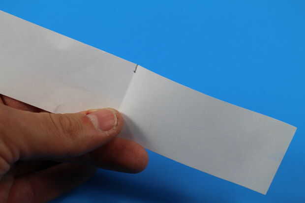Envuelva el papel alrededor del tubo y marque los puntos para los agujeros, uno al extremo y el otro alineado con el pliegue.