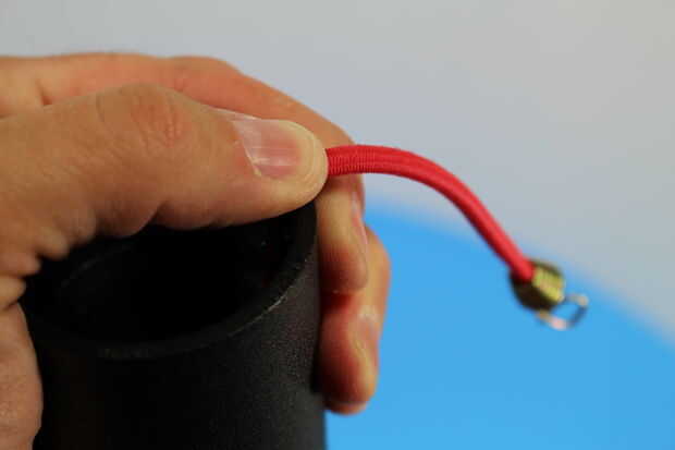 Yo mismo cuentística estirar la cuerda y mantenerla con mi pulgar mientras instalaba la segunda tuerca. Si esto no funciona para usted, el uso de la gutapercha para estirarla.