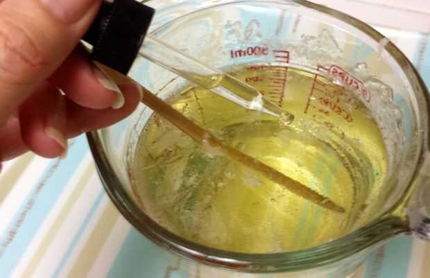 Añadir el aceite de árbol de menta y té a base de jabón derretido. Para 2 tazas de jabón, recomiendo 10 gotas de cada uno.