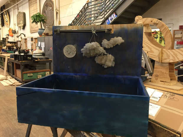 Así después de conseguir todo lo pintado, comencé a colocar la luna y las nubes a la caja.