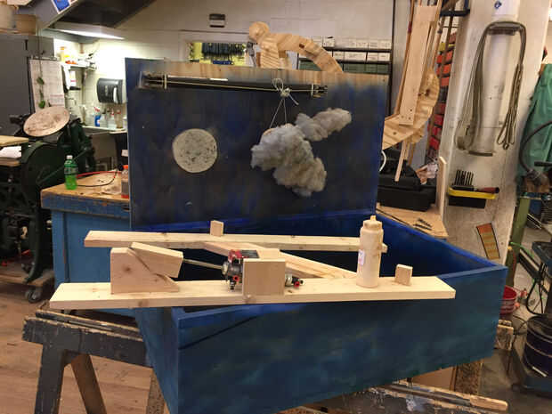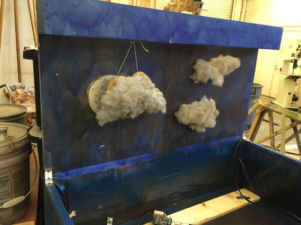 La parte posterior de la nube móvil poner algunos tornillo corto en y envueltos algunos aroud de los dos tornillos en la parte posterior de la secuencia y luego los ligan a una lavadora. La lavadora estaba arriba del soporte de la el cilindro de cable, para que cuando te solté, la nube fue suspendida (aunque en una cursi 5 tipo de proyecto de grado de forma). Olvide tener dos terminales hasta el soporte para que ellos en la nube no retuerza alrededor al colgante.