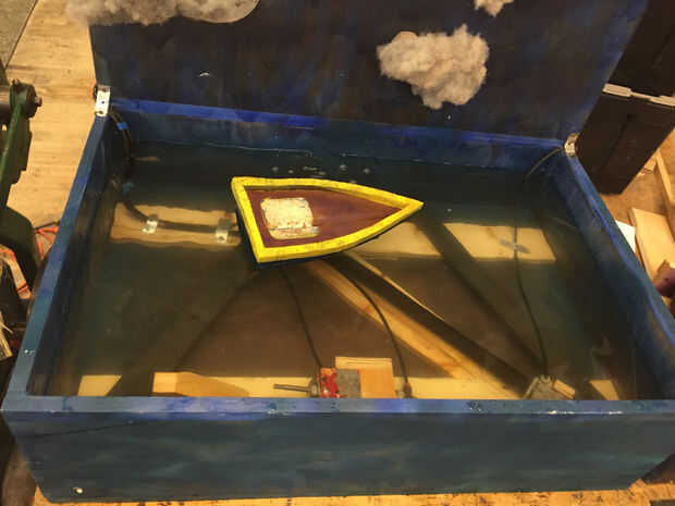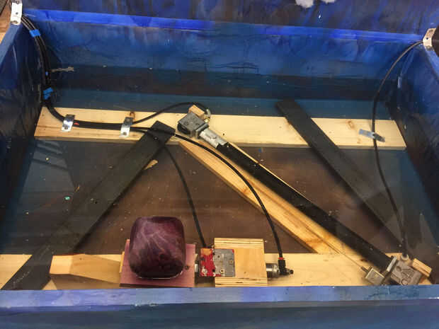 El primer problema que golpeó fue que la subestructura flotar (lo que yo esperaba), usé poco 1/2" de placa de acero que fue ahí que pesan en el agua.