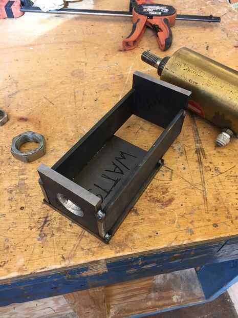 Soldar la placa de 3-1/2 "x 5-3/4" en la parte inferior. Asegúrese de que sus acoplados hasta la placa con orificio perforaron en ella.