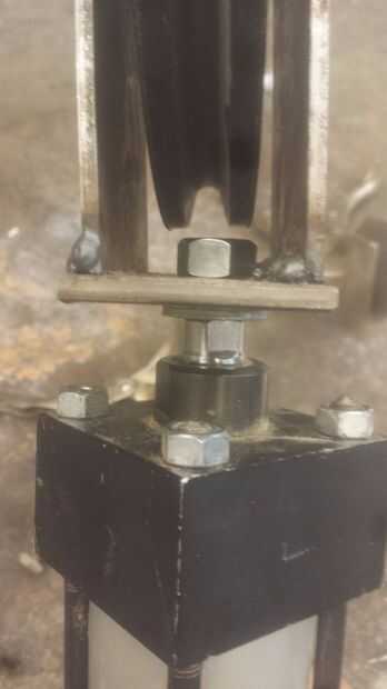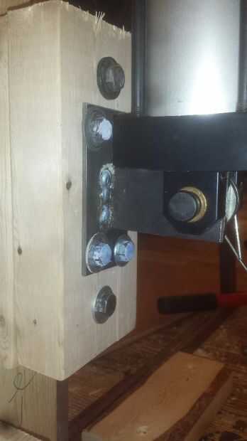La parte inferior del cilindro y el pie que acaba obtener lag atornillado en 2 bloques de 2 x 4, que se sujetar con pernos al bastidor (véase el cuadro arriba)
