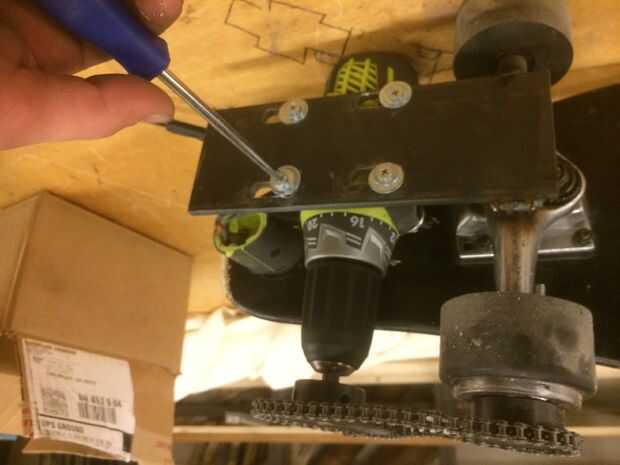 Cuando haya terminado, podrá a su placa de montaje del perno en su motor de ryobi, y con un destornillador, ajustar la distancia entre sus 2 ruedas dentadas.