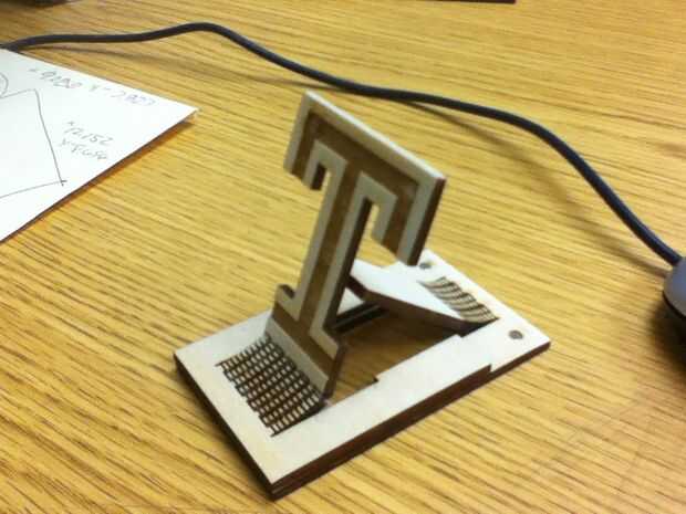 Esta es mi opinión sobre un soporte de teléfono portátil. Es compacta, simple y se adapta fácilmente en su bolsillo. Utiliza una bisagra viva e imanes para sostener hacia abajo. He diseñado tras el logo de la Universidad de Temple. Hay imanes para evitar que se abre cuando no utiliza. Puede sostener el teléfono en una orientación horizontal o vertical. Sin embargo, con los teléfonos más grandes no sería capaz de sostener el teléfono. Algunos teléfonos sin un caso o un protector pueden ser propensas a deslizamiento. Los ajustes pueden ser necesarios para satisfacer sus necesidades.