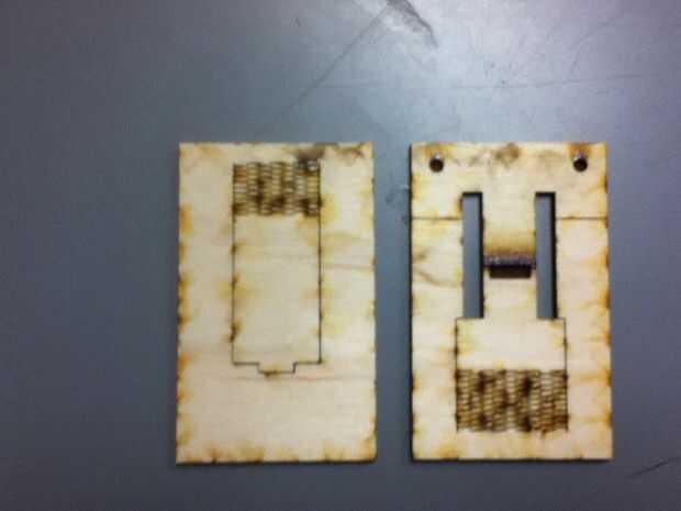 Asegúrese de que alinear la madera e imprimir con espacio adecuado. La pieza superior tendrá que dar la vuelta una vez cortado para permitir el logo y los agujeros para los imanes.