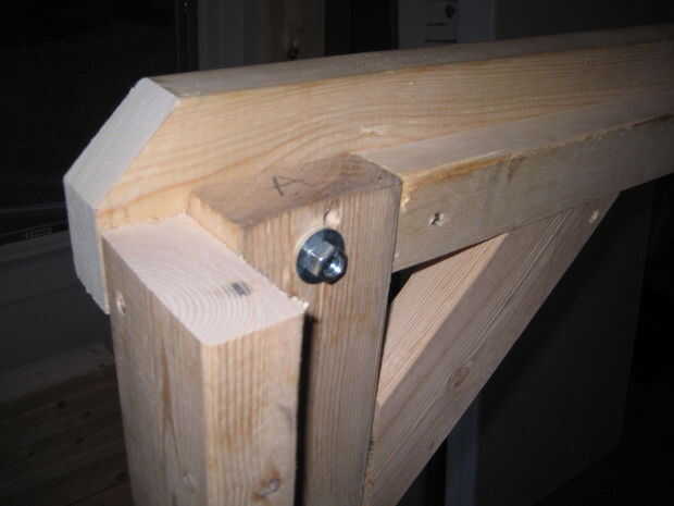 Los montantes se fijan a las vigas usando los pernos de carruaje y se está poniendo firme con tornillos para aliviar meneo/bamboleo.