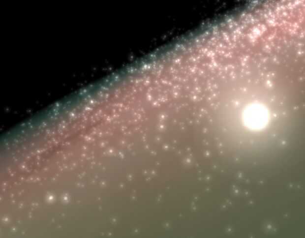 Estrellas no son uniformes. Son diferentes tamaños, diferentes brillos y colores diferentes. Mi truco con tener seis objetos de antes no parece aplicarse aquí: realmente quería cada estrella sea único y para reflejar la importancia relativa del proyecto. Básicamente, los proyectos que son las "estrellas brillantes" deben brillar. Cada vértice único es un perfecto uso de shaders de WebGL. Recordar el código de sombreado de antes: