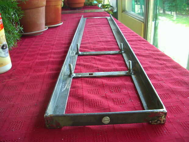 compré dos piezas de 1m de hierro de ángulo, alineados a los lados del motor y conectados en los extremos con dos pletinas soldadas. Luego coloqué los cuatro tornillos que se sujeta el motor y también estén soldadas en su lugar. Finalmente he añadido cuatro almohadillas de goma para absorber vibraciones. Usé el mismo como el cuadro anterior. Atornille el motor en su lugar.