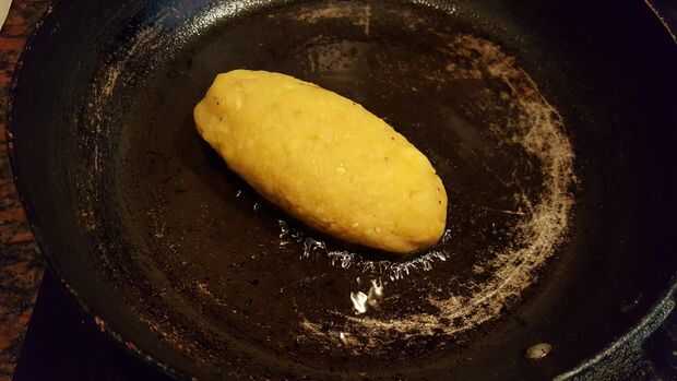 Este postre/merienda es muy popular en el este de Borneo, Indonesia y se llama Pisang Gapit (presionado a plátano).Originalmente realizado en ámbar de carbón y presione con la herramienta específica, utilizamos banano Saba (que no está disponible en