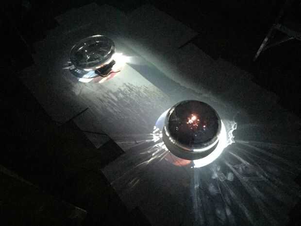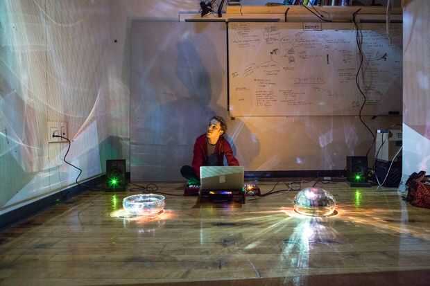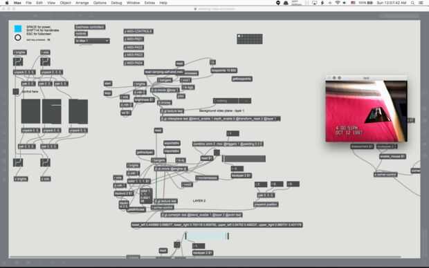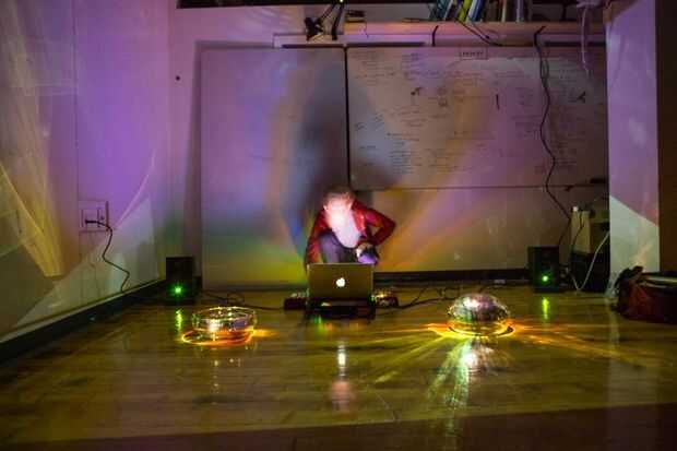 Que era tiempo de traer los vasos a mi estudio y empezar a reunir las cosas – el vidrio, el vídeo, los elementos performativos vivo. Me llevó toda la noche para tener todo funcionando y configurado, pero finalmente tuve un teclado controla el video en vivo y tres capas de proyección perfectamente trazado en el piso, la taza de "Eco" y el recipiente de "hold" respectivamente. Que había construido todo el software desde cero en el lenguaje gráfico de programación Max/MSP/Jitter, porque estaba seguro de lo que necesitaba. Quería que la flexibilidad de escribir y reescribir el vocabulario que iba a utilizar en el desempeño.