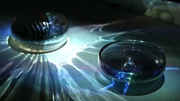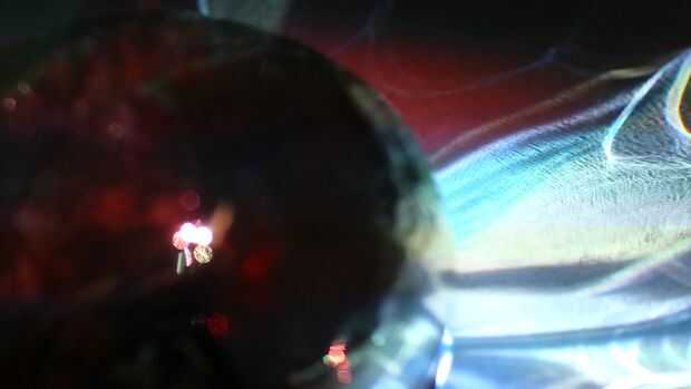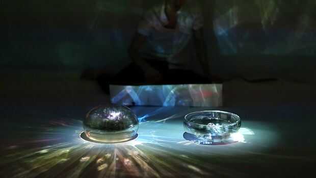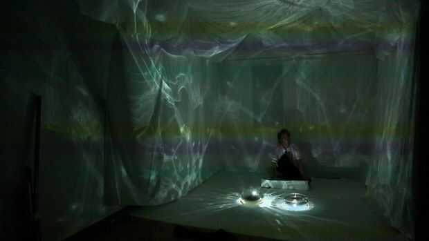 La instalación del software fue crucial, pero quería el software y equipo para caer lejos de la experiencia inmersiva de la actuación, desaparecen en la conversación nostálgica extraño entre los dos vasos. Para facilitar eso, cumplí mi estudio en una cámara de proyección, cubriendo las paredes y el piso con papel blanco y la tela para atrapar las reflexiones delicadas de los vasos espejos. Escondí mi equipo portátil y todos los audio y proyección fuera de la vista, así que lo único que en el espacio era me, un teclado y los dos vasos. La pieza funciona alrededor de diez minutos, un arco de una combinación contemplativa metraje estática y la naturaleza con una cacofonía de exclamaciones e incertidumbre – clips pequeños de mi familia diciendo cosas como "um" y "así" y "No sé" finalizar con un crescendo resonante de clips que tratan con la expectativa y la identidad, finalmente desaparecer en el silencio.