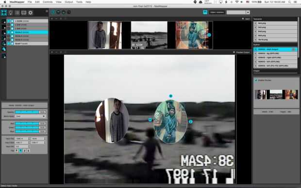 Por último, es momento de presentar la pieza, como se dio cuenta de que posiblemente podría ser. Ahora que sabía lo que necesitaba en cuanto a rendimiento de vídeo, pude mover de software a la medida y hacia algo específico que sería más fácil de realizar con, más potente y más eficiente. He utilizado VDMX5 (video en vivo o software de VJ) para jugar, cortar, estirar y manipular los videos con un teclado, envió el video a un programa de mapeo de proyección llamado MadMapper y envía el audio en Ableton Live, que me permitió construir una banda sonora compleja en tiempo real junto con los videos.