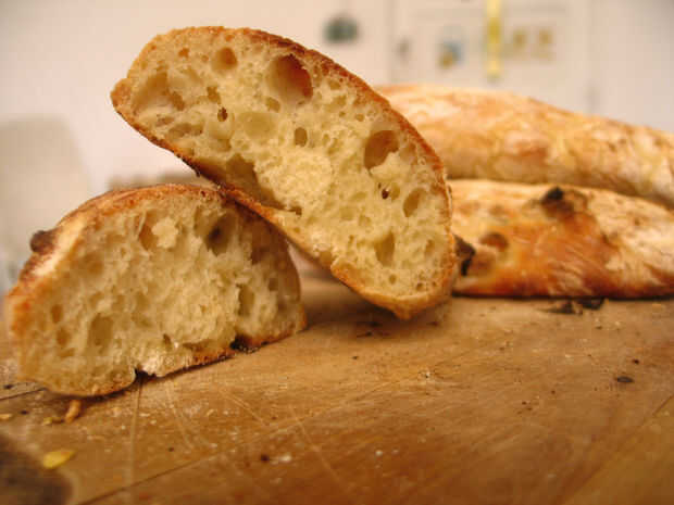 Si todavía tiene más piezas para hornear luego repita el paso 4, de lo contrario debe disfrutar su pan de chapata crujiente en el exterior y suave/masticable-en-el-interior.