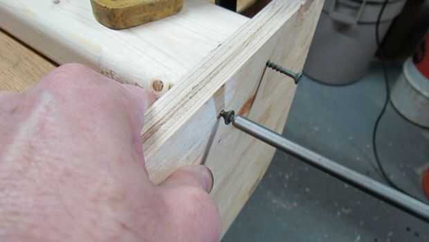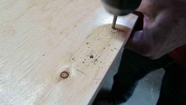 Ahora pre perfore 2 agujeros en la base para el 2 x 4. Utilice 2 tornillos para fijar la base a la 2 x 4. No tienes que perfore previamente pero que hace más fácil de montar.