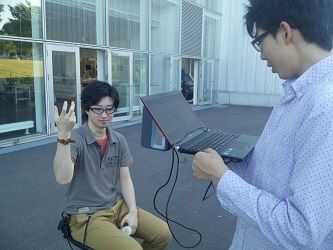 Sentido scannerをPCに接続し、Senseを起動する。 3D Person、Head を順番に選択する。 被写体を椅子に座らせ、肘より上を撮影をする。 撮影が終了したら、solidfyをし、stl形式で保存する。