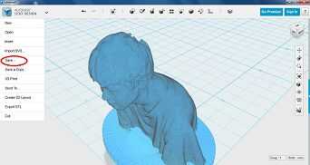 さきほどのstlデータを123D designで開き、高さ30mm程度の大きさにする。 さらに下の部分に厚さ3mm程度、全体が収まる大きさの台座を作成する。 できたらstl形式で保存する。