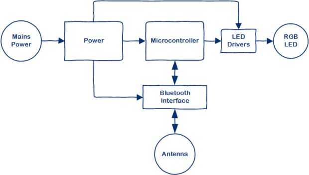 Diseño de nivel de sistema para mi lámpara de LED de Bluetooth, sí hago dibujos de Visio para la diversión.