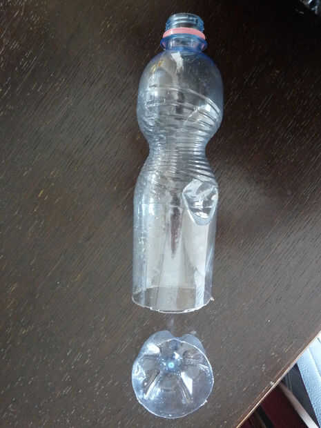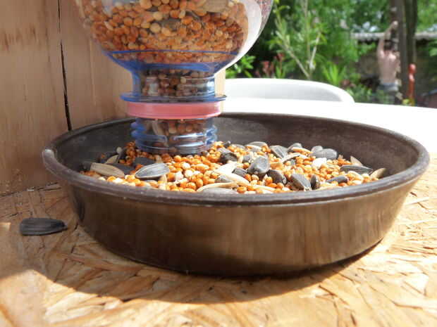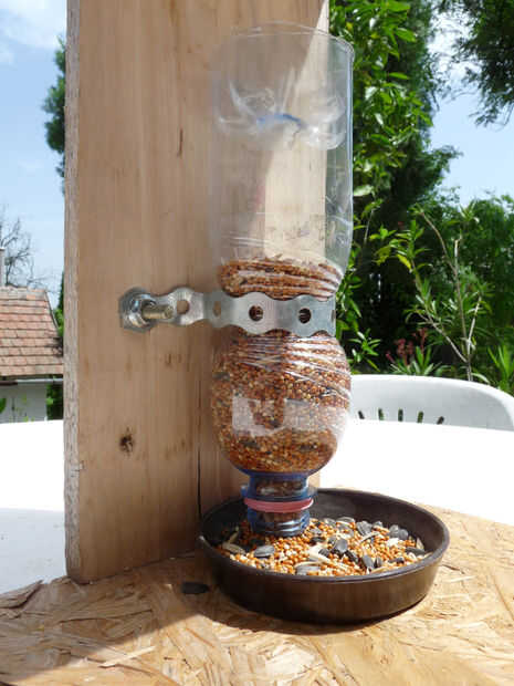 He puesto el fondo de la botella en la botella para evitar los pájaros vuelan en él - opcional.