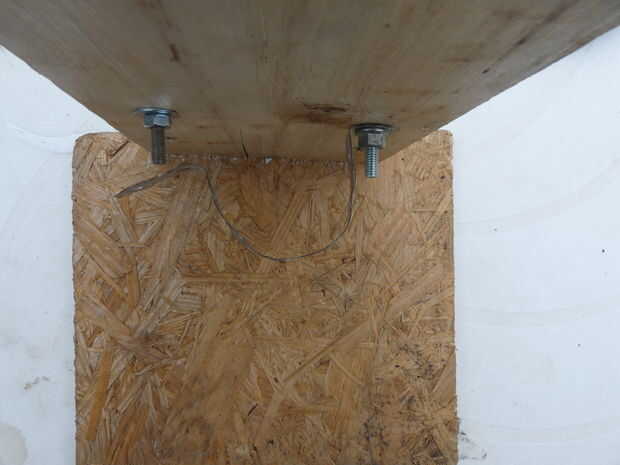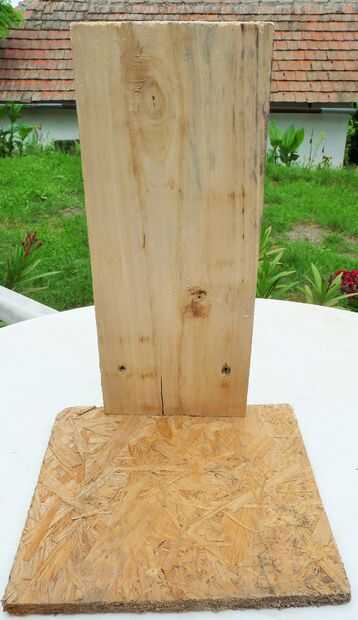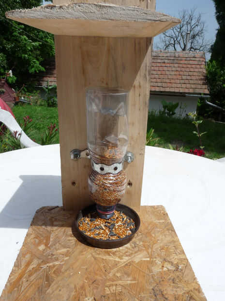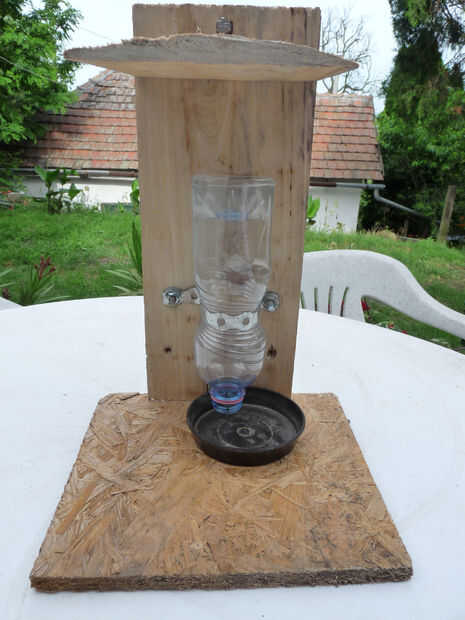 Después de colocar la botella (boca abajo) en el soporte de la botella, hice un 'techo' para proteger de la lluvia, para que he usado el 3. pieza de madera.