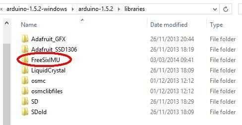 Aquí está la biblioteca de FreeSix IMU instalada.