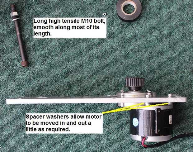 Usé dos placas de aleación rectangular y cortar los agujeros en ellos para permitir que los motorreductores de tornillo "a través" como se muestra. Mediante el uso de arandelas puede mover el motor y salir un poco utilizando como separadores.