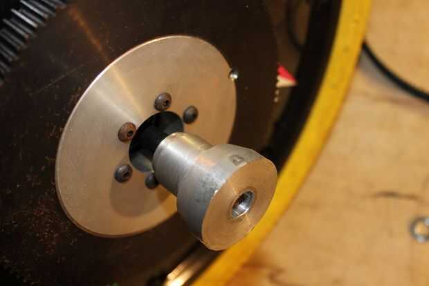 Un espaciador de aleación de sólo la anchura correcta para que el cinturón de cadenas subir línea con los motores se hizo para cada lado en un torno de la manía. Debe ser estrecho donde lo peros hasta el cojinete interior y agradable y amplio donde lo peros hasta la placa de la aleación - esta amplia parte separa las cargas y detiene el perno de eje inclinable hacia arriba cuando su peso se coloca encima de la máquina.