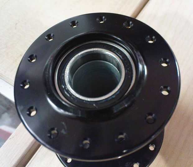 Este es el lado del cubo de la que no tiene los agujeros de perno para el freno de disco. Estos agujeros son para los radios cuando está montado.