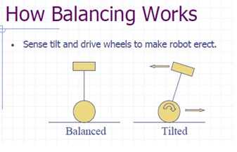 La física de este robot es simple, el soporte del robot en dos puntos de alineado, la rueda y tiende a caer y perder su verticalidad, el movimiento de la rueda en el sentido de caer levanta el robot para recuperar la posición vertical.
