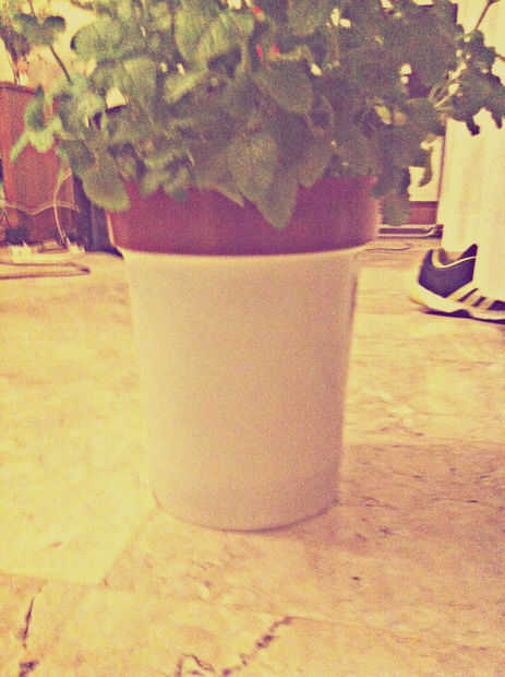 La lógica es que usted tiene que encontrar el cubo y ollas compatibles. La maceta debe ser más corto y puede sentarse en la parte superior del cubo.