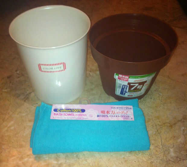 3. vieja toalla - gratis o comprar $2 de Daiso