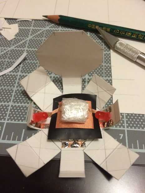 Use cinta de cobre para conectar las patas positivas y el tejido conductivo para terminar el circuito.