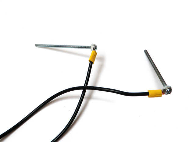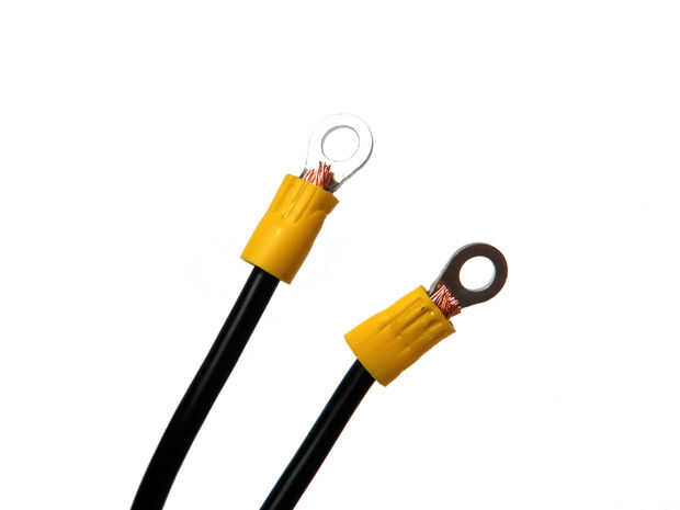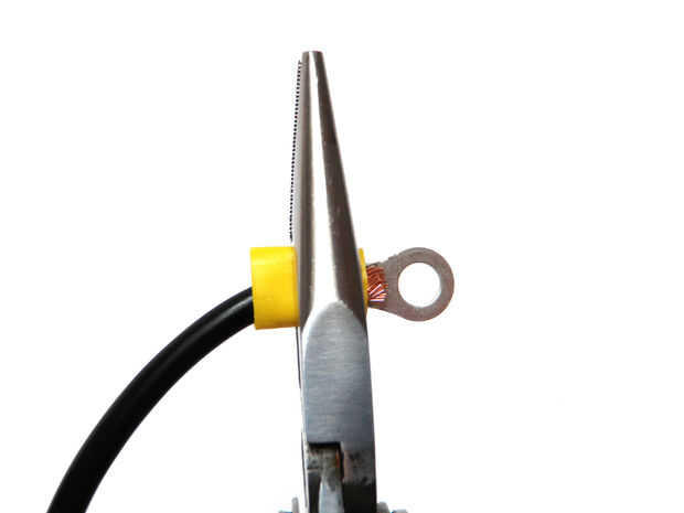 Tira el extremo de cada cable de calibre 12 y un anillo terminal en el extremo de la abrazadera.