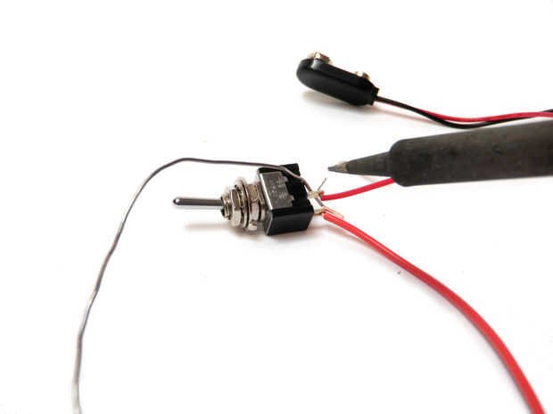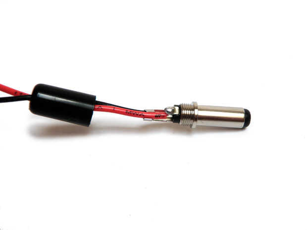Suelde el cable negro a la conexión a tierra externa del enchufe. Suelde el cable rojo a la conexión de poder interior.