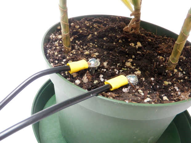 Inserte las sondas de suelo de la planta alrededor de una pulgada aparte.