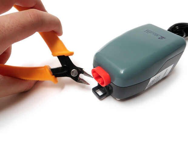 Recorte cualquier plástico innecesario los soportes de montaje desde la parte delantera de la bomba que puede evitar que se descarga con el caso (boquillas y correspondiente hardware no incluido).