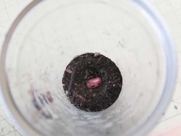 Para las semillas grandes, hacer un agujero con el dedo o un lápiz, caer en y tápelo. Una regla general es enterrar las semillas a una profundidad de aproximadamente la mitad de su dimensión más larga. Puede colocar una segunda semilla grande allí, en caso de que el primero de ellos no germinan, pero asegúrese de los separados. No queremos competir demasiado!