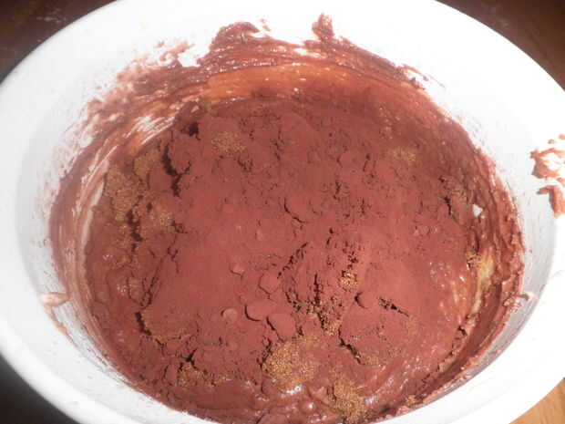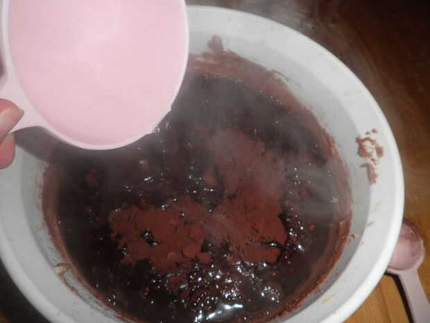 tomar su panela y cacao en polvo restante y espolvorear por encima de la capa de pudín, do no revolver. hervir el agua y mida con cuidado y verter sobre la mezcla de pudín. una vez más, no revuelvas