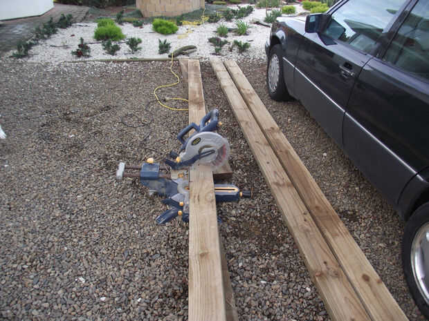 Decidí que ya que había espacio iría para la dimensión fácil de 6 m x 3 m, así que corte un par de las longitudes en mitad con mi sierra de inglete compuesto