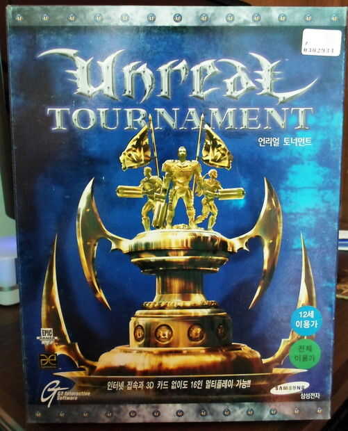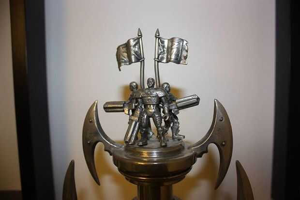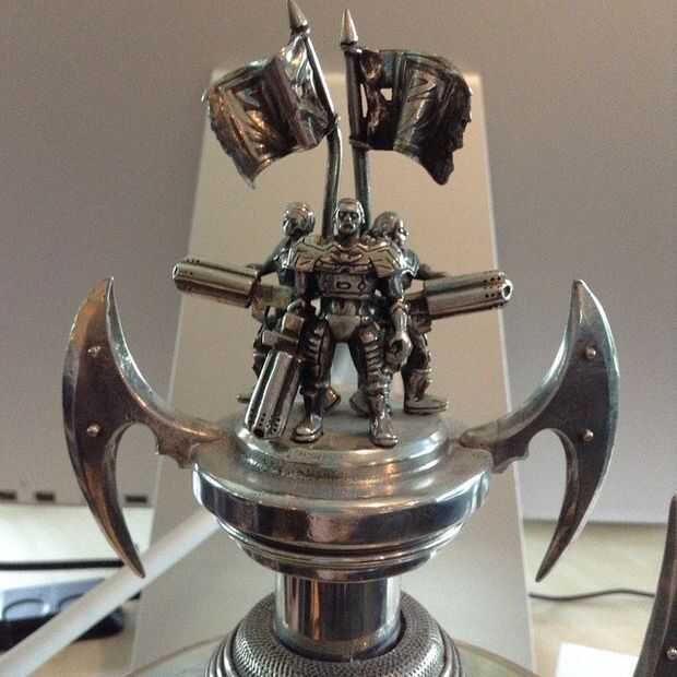 Modeló este trofeo desde cero y ha añadido los personajes de la UT y los cañones de eightball de UT99. Mire estas fotos que encontré en el foro de UT y vieron mi arte de caja de Unreal Tournament. Después de creé un diseño UV y crean una textura basada en las fotos. Hice tres variaciones de color, porque la real estatua es de metal (= plata) y en el arte de la caja había una versión del oro. Con plata y oro en su lugar pensé que sólo una versión bronce faltaba así que añadido también que uno.