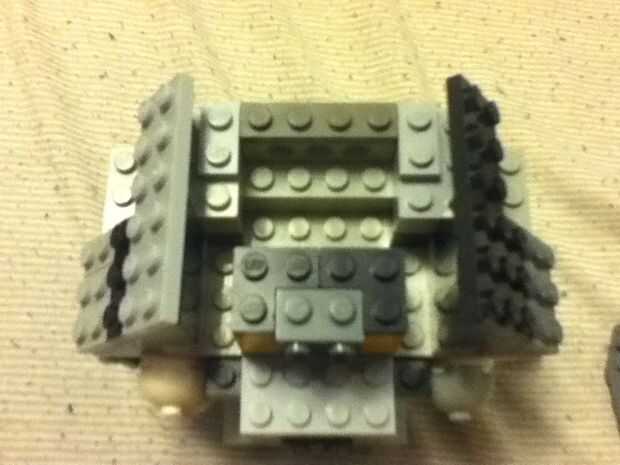 Usted tiene que asegurarse de que los pasadores cabrán en los agujeros más adelante para el montaje final, que requiere sólo una muy leve desconexión de partes. Para asegurarse de que Alinee correctamente, conseguir una placa plana y ponen 3 azulejos de 2 x 2 con técnica alfileres en el centro (ver casco de principal). Colócalos como se muestra en el paso de casco principal (2 justo al lado del otro, los 3 5 postes abajo, centrado en el.) Separe ligeramente los ladrillos de la parte siguiente hasta que los pernos en los agujeros perfectamente y los azulejos ellos mismos no te sueltos.