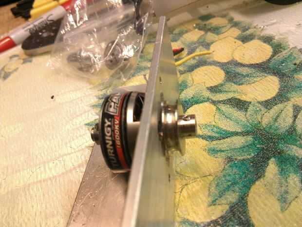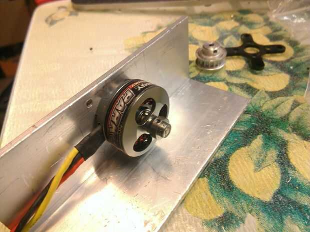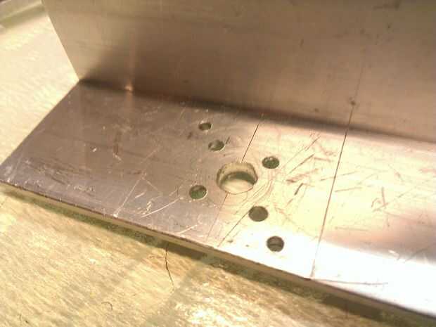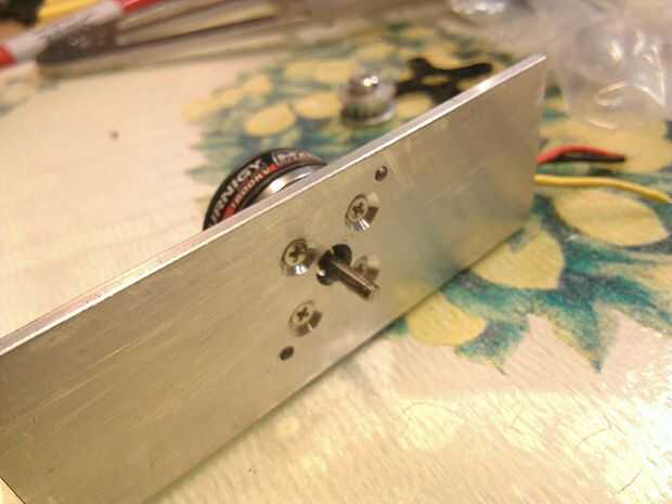 Básicamente tomó un trozo de ángulo de aluminio y había perforado el patrón de montaje del motor sobre una sola pierna y taladrar los agujeros para la fijación al bloque de ampliación UHMW en la otra pierna. Luego hacksawed y presentado para obtener el soporte para caber en el espacio necesario.