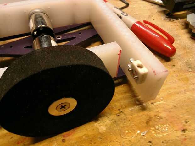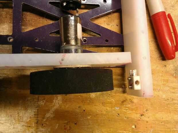 Colocación de interruptor de poder siempre merece algún pensamiento, debe ser accesible al operador, pero no a los golpes de otros bots. Como se muestra en las fotos, he puesto en el interior de la mampara trasera justo detrás de la rueda izquierda. Por sugerencia de Fingertech, aprovechado los agujeros para rosca 4-40, que significó que pude montar sin tuercas.