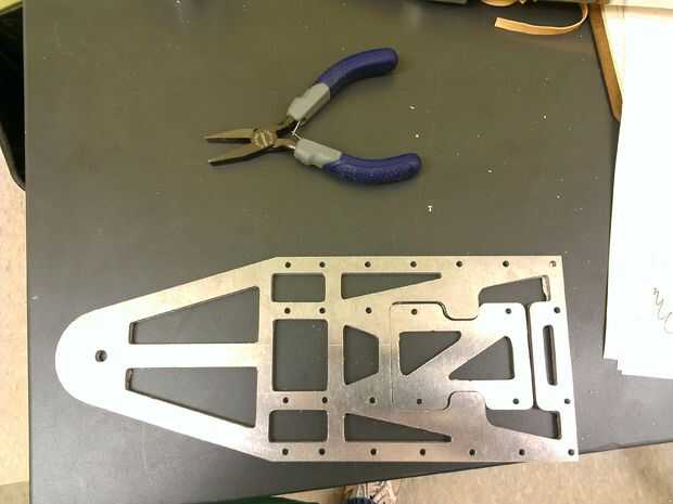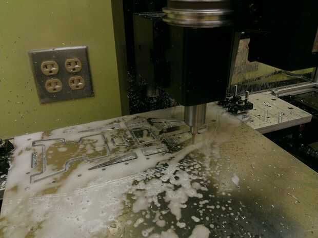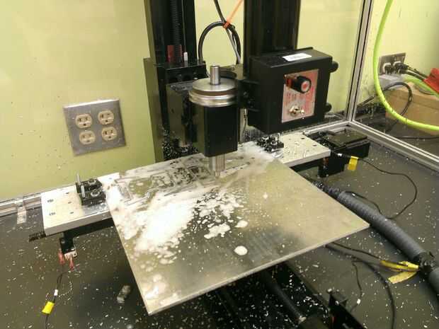 Tengo acceso a una pequeña máquina de fresado CNC en la Universidad donde yo trabajo.  Lo utilizado para cortar las placas de armadura superior e inferior de 3/16 placa de 6061-Al.  La última foto muestra la armadura superior y la tapa (de edad) después de moler.  Todas las piezas fresadas necesaria alguna mano presentación para quitar las rebabas, suavizar los bordes, etc..