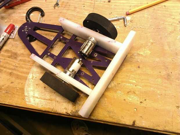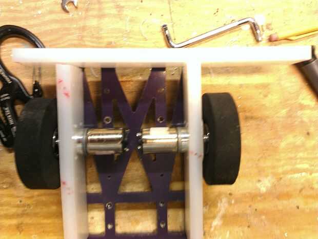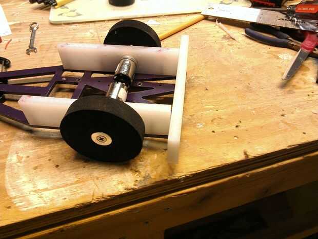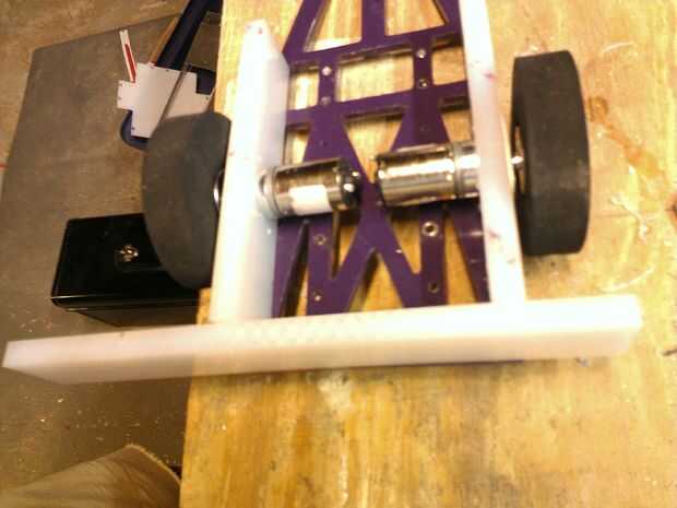 Con las ruedas y ejes montados y en su lugar, tamaño el mamparo trasero para que se pega sobre el grosor de la rueda más allá de cada rueda. Esto da espacio para fácilmente quitar y reemplazar las ruedas durante la competición, así como proporcionar más buffer entre las ruedas y la armadura lateral. Más buffer significa que oponente de spinning Blade o ' la muerte tiene que empujar más lejos a mi rueda...