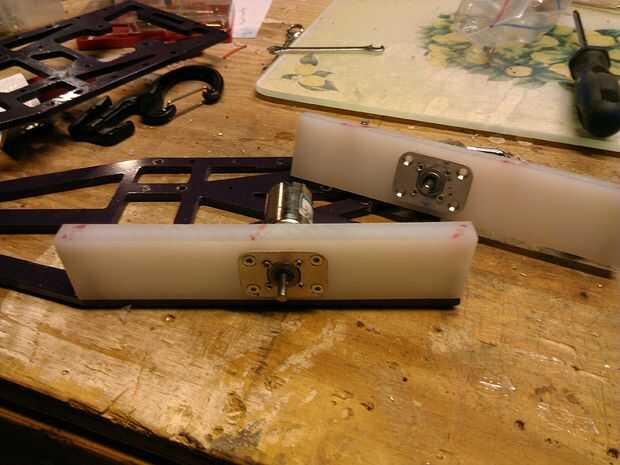Puse a la electrónica y motores para montar y solían elegir la ubicación de y taladrar los agujeros para los motores.