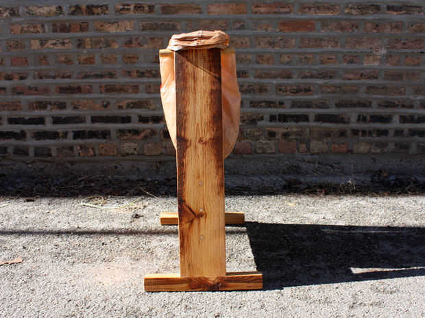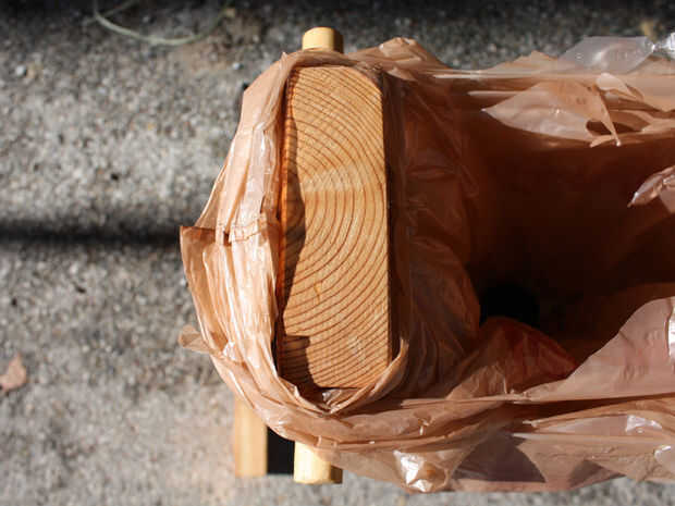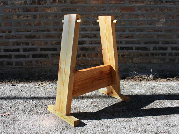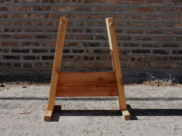 Tomó cerca de dos horas para hacer de madera reciclada de todos y es tratada con un acabado de aceite de linaza hervido no tóxico, sostenible. Todas las piezas son lo suficientemente pequeñas como para ser hecha de desechos, y el diseño es fácilmente modificable para su material especial. Podría ser construido con sólo un taladro y una sierra circular en un sujetador, pero utiliza varias herramientas de taller para un mejor ajuste y acabado.