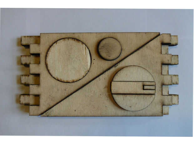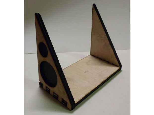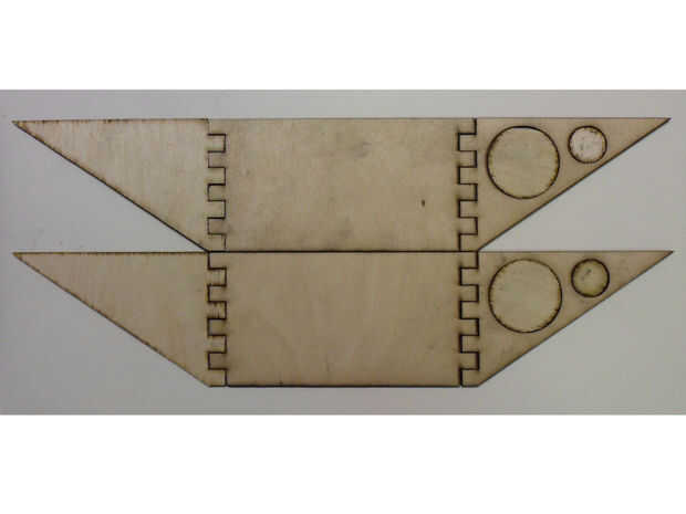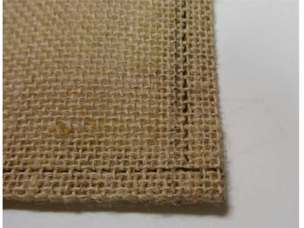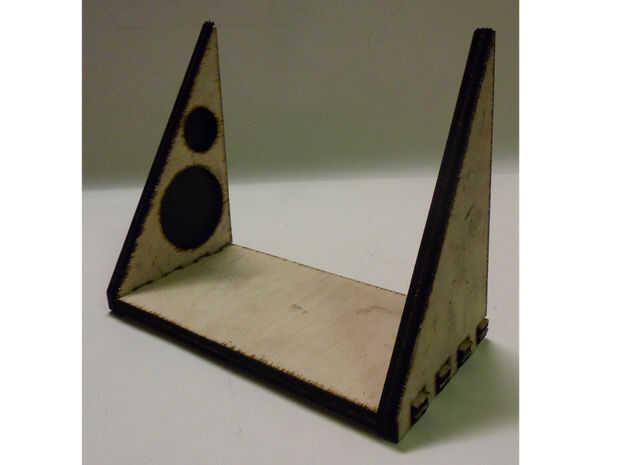 La forma de la radio es uno que cuando corte muchas a la vez (productos masivos) hay un mínimo desperdicio de material. Corte mío en un cortador láser. Usted puede encontrar la utilicé la plantilla instalada. Una vez que ha cortado la madera lleve los dos lados para que sean perpendiculares a la base y encolar. cortar la arpillera al tamaño pero dejar espacio para un dobladillo. El dobladillo detendrá el hessian de deshilachado.