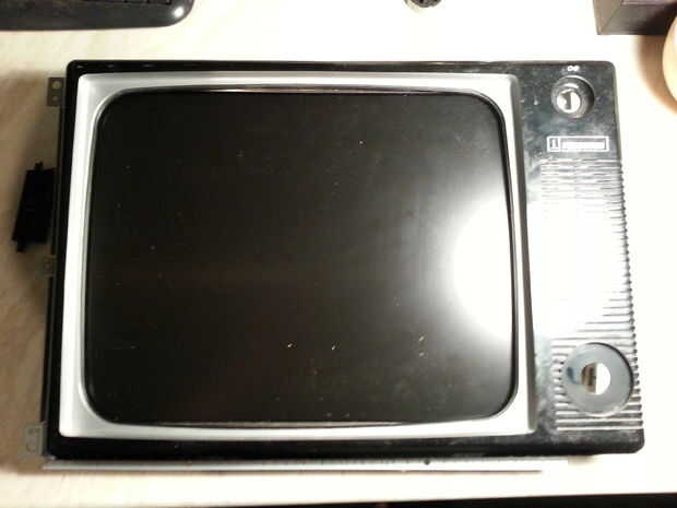 La pantalla plana era un ajuste casi exacto para el agujero dejado por el CRT, con sólo un pequeño espacio en la parte superior y un poco sobrado en el lado.